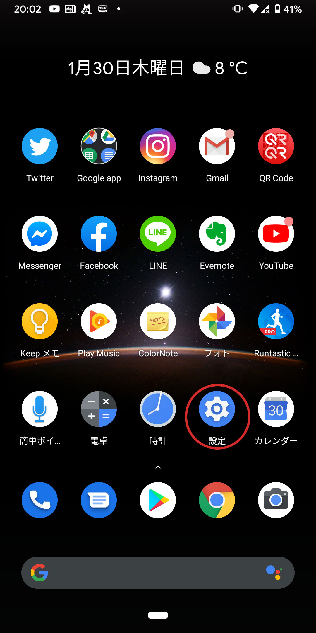 設定をタップします。スマートフォンの設定場所は機種によって違うので探してください。
