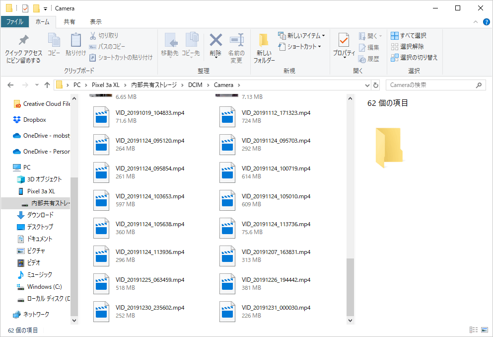 Pixel 3a XLの動画データ保存場所