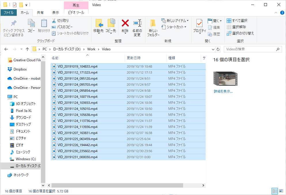 フォルダ内の動画データを全て選択します。